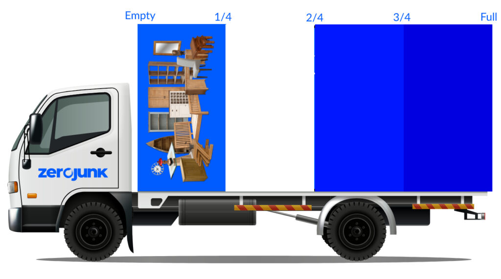 At Zero Junk, we price based on volume. The cost depends on how much space your items occupy in our truck. We operate a 4-tonne truck, typically 6 to 7 meters long, capable of carrying up to 4 tonnes of junk. Keep in mind that both weight and volume matter—bulky items may affect how much we can load.